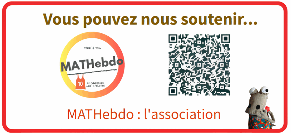MATHebdo est une association et vous pouvez y adhérer. Les contenus restent libres et gratuits. Votre participation vient soutenir le dispositif, nous permet de financer la protection juridique de Josette, le subventionnement de notre...