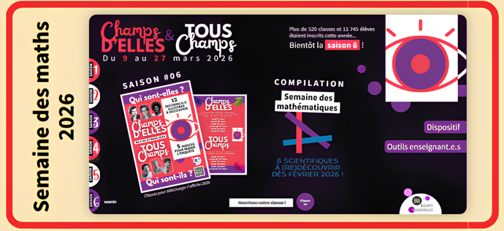 La 15e semaine des mathématiques est organisée du 14 au 25 mars 2026 sur le thème « Égalités ». C’est l’occasion pour nous de vous faire mettre à l’honneur Champs d’ELLES et TOUS Champs !Ce dispositif...